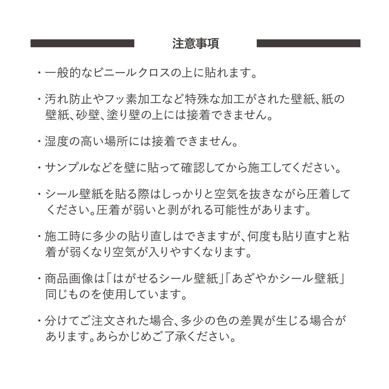 ※イメージと違う、施工に失敗したなど、お客様のご都合による返品・交換はお受けできません。