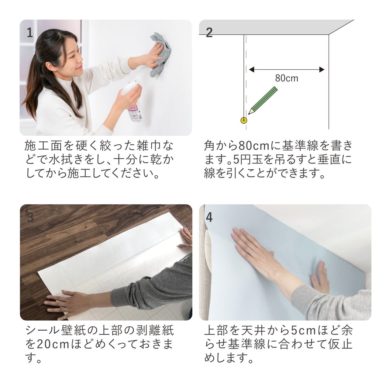 ※はがせるシール壁紙を貼る際はしっかりと空気を抜きながら圧着してください。圧着が弱いと剥がれる可能性があります。