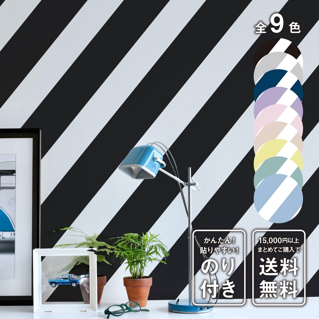 品番 - 001266 表示価格は1m単位となっております。 現在、当店では長さ2.6mのサイズのみ取扱いがあり、 1m単位での金額表示なので、表示価格×2.6m となり、差額6,630円が追加で発生します。 ※差額分は自動で追加されます。 現在、長さ2.6m以外のサイズの取り扱いはありません。 予めご確認の上、ご購入ください。 幅:82cm固定 リピート - 33cm/ステップリピート 種類 - あざやかシール壁紙 再剥離 - 不可 カラー - ブラック(黒) 同型商品(別色・別種類)一覧 - https://wearll.theshop.jp/search?q=TILT モチーフ - ストライプ,ななめ,斜線,スタイリッシュ 詳細 - 「色柄を確認したい」「小さいサイズが欲しい」というかたはこちらがおすすめです→https://wearll.theshop.jp/blog/2024/05/29/165134 納期・配送日指定に関してはこちら→https://wearll.theshop.jp/blog/2024/05/28/113534
